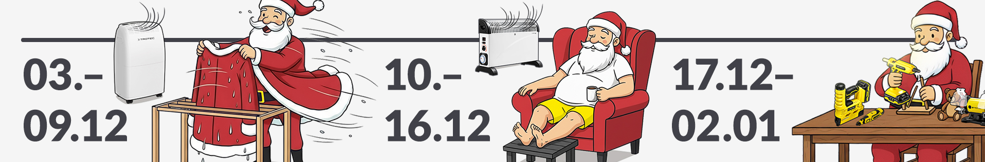 El aire está cargado de expectación, porque en TROTEC la temporada navideña anuncia la época más acogedora del año. Para que disfruten de semanas de alegría festiva hasta bien entrado el nuevo año, ponemos bajo el árbol de Navidad los mejores ayudantes para su hogar. Porque Papá Noel no solo adora las galletas, sino también la tecnología funcional de TROTEC.