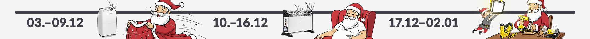 Disfruten de tres fases promocionales consecutivas en las que ofreceremos productos seleccionados con descuentos festivos especialmente atractivos. Desde el clima interior perfecto y una acogedora calidez hasta potentes electrodomésticos del taller de Papá Noel: cada periodo promocional revela nuevas y potentes ventajas para la temporada de invierno e ideas perfectas para regalos.